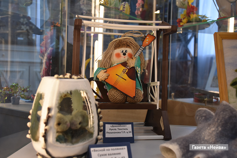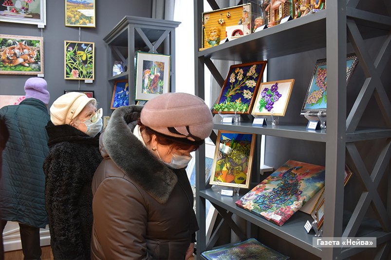Привлекают внимание миниатюрные деревья из бисера. Их автор Ольга Шарова рукоделием увлекается уже 15 лет: вяжет, вышивает, рисует картины. Из последних хобби — бисероплетение. В той же технике творит и Нина Силина: увлеклась, по ее словам, нежданно негаданно и теперь посвящает творчеству все свободное время.