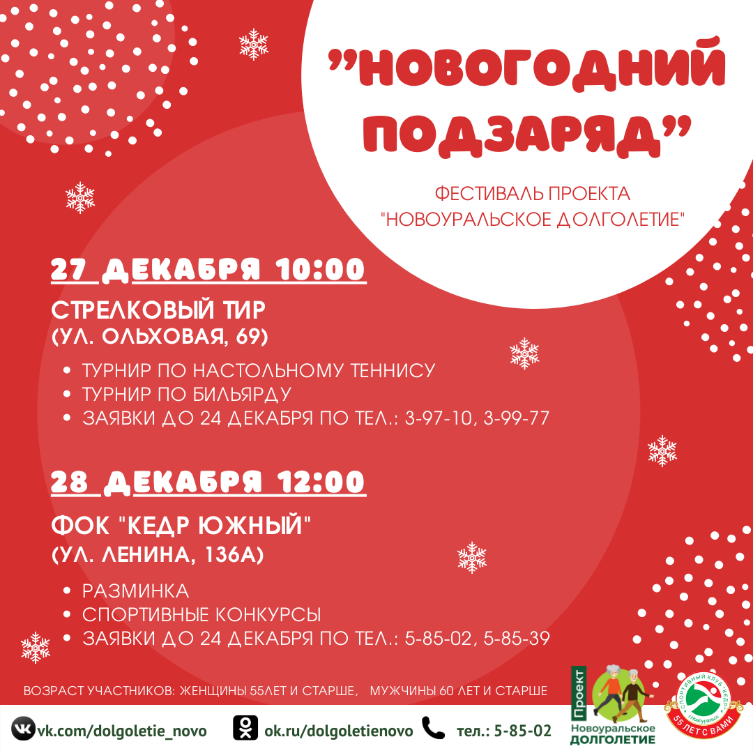 27 и 28 декабря приглашаем принять участие в Фестивале проекта "Новоуральское долголетие" - Новогодний подзаряд!