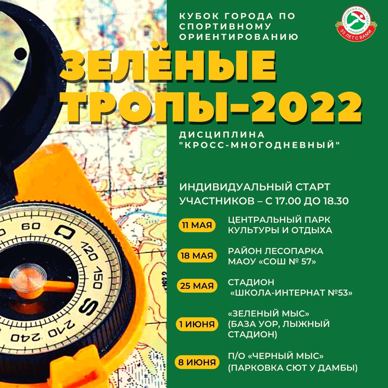 01 июня в «Зеленый мыс» (база УОР, лыжный стадион, Загородное шоссе, 16) состоится 4 этап "Зеленые тропы - 2022"